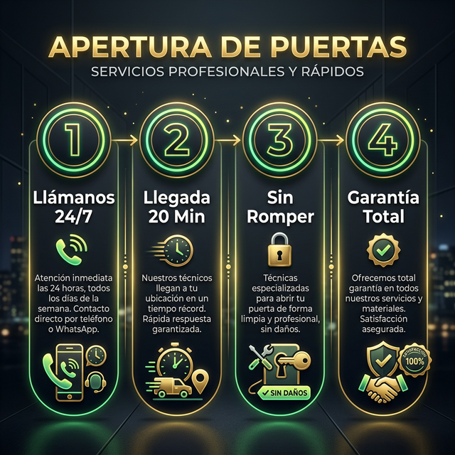 No esperes más. Nuestro equipo de cerrajeros profesionales está listo para ayudarte. Disponibles 24 horas, llegada en 20 minutos, sin roturas, precios transparentes.