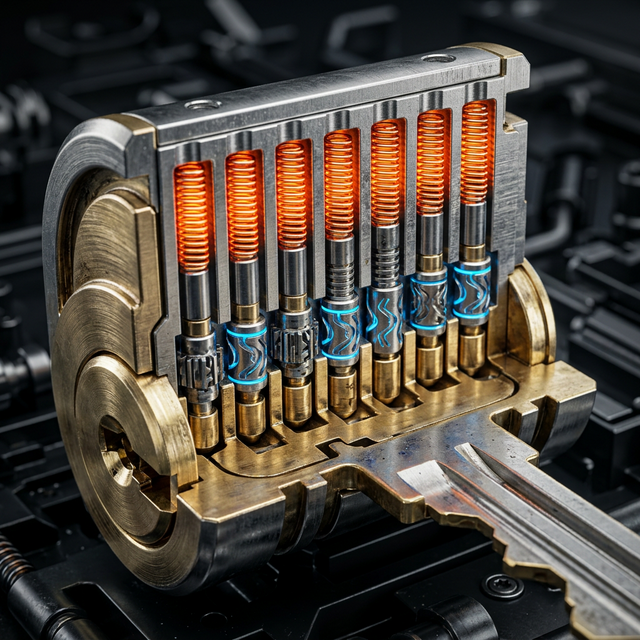 Una cerradura antibumping real no es un simple cilindro de latón. Es una pieza de micromecánica de precisión diseñada para reconocer variaciones de frecuencia y fricción, bloqueándose cuando detecta un ataque. Aquí te explicamos su tecnología: